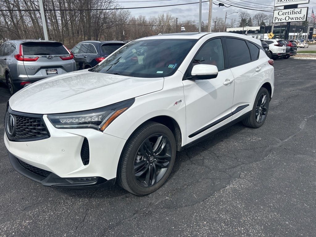 2023 Platinum White Pearl Acura RDX A-Spec Package SH-AWD 10-Speed Automatic 2.0L 16V DOHC This Acura RDX has many features and is well equipped including, Collision Avoidance System, Collision Warning System, Adaptive Cruise Control, Leather Seats, Heated Seats, Blind-Spot Monitors, Lane Keeping Assist, Navigation System, Backup Camera, Keyless Access with Push Button Start, Automatic Headlights, Apple CarPlay, Android Auto, Voice Recognition, Bluetooth Hands-Free, Sunroof / Moonroof.